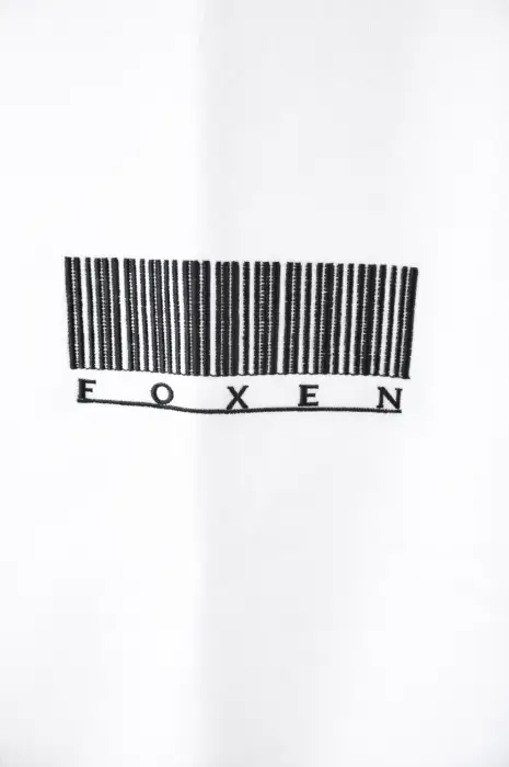 Signature FOXEN barcode embroidery on chest